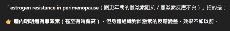 更年期並非單純的「雌激素不足」,而是「雌激素下降」與「雌激素阻抗(estrogen receptor resistance, ERR,全名為雌激素受體阻抗)」共同造成的複合生理轉變。醫學研究指出,女性在40–50歲的更年期前期(perimenopause),即使血中雌激素濃度仍在正常範圍,然而細胞對雌激素的反應能力已開始下降,導致一系列更年期症狀提早出現(Santoro 2021;Prior 2018)。